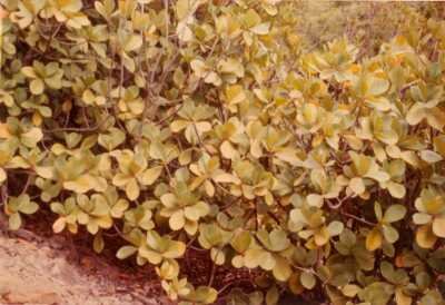 Kaklen (Clusia mangle) at Soufrière Springs, Dominica. Rock balsam (Clusia plukenetii) occupies a similar niche in Martinique and St Lucia. Both are Lesser Antillean endemics. Photo © Arlington James.
