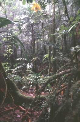 While there is no shrub layer, there is typically luxuriant waist high herbaceous vegetation inlcuding balasier (Heliconia bihai), fern allies and anthuriums.