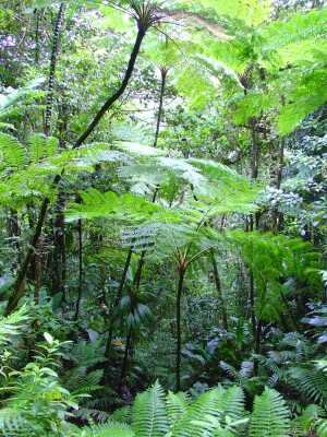 Rainforest, as the name suggests, relies on an abundance of water such that it is largely limited to the humid tropics, i.e. equatorial regions. In the Caribbean, the seasonal climate precludes rainforest in the lowlands but at modest elevations on the mountainous islands there is adequate rainfall yearound to allow such a plant community to develop. Not surprisingly this rainforest type is distinct from that found on the South American continent.