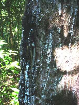 Gommier (Dacryodes excelsa) trunk exuding latex