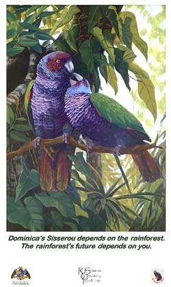 Poster produced by Dominica’s Forestry, Wildlife & Parks Division depicting the endemic Sisserou (Amazona imperialis